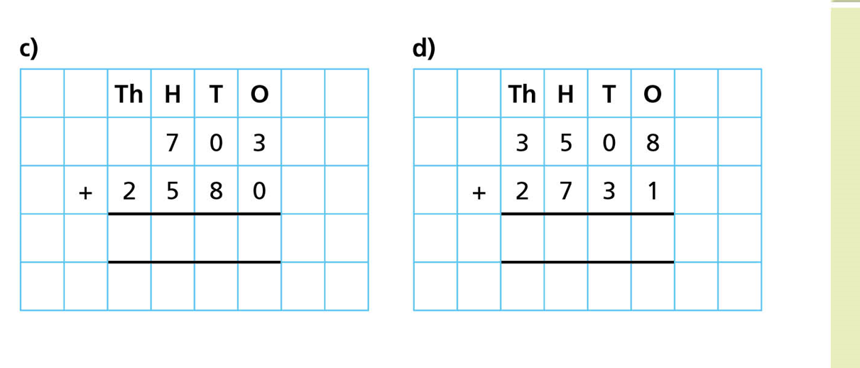 703 + 2,580 =                                                                                   3,508 + 2, 731 =