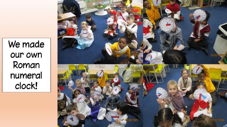 Last week we had our Roman Day and we had a fantastic time! We learned all about Roman numerals, displayed our knowledge of Boudica in our History POP task and completed our Boudica themed DT project with sliders and levers. Please see photos on our class page!