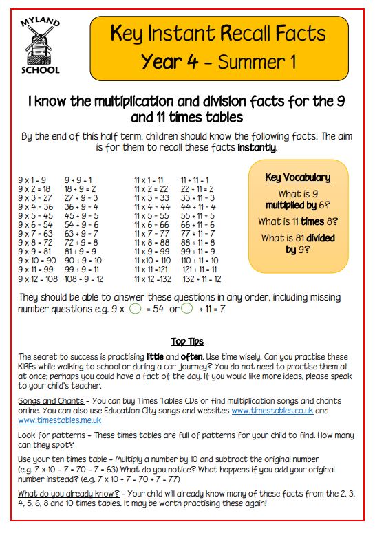 We are continuing to revise the times tables and the next two weeks will focus on the 6 x table. If your child is in Year 4, it is particularly important that they practise daily, as there will be the National Times Table Check in the Summer Term. I appreciate your support with encouraging them to do this at home. Thank you.