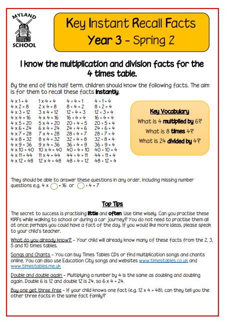 We will now be revisiting the 4 and 8 x tables. Please continue to encourage your child to practise the times tables each day.